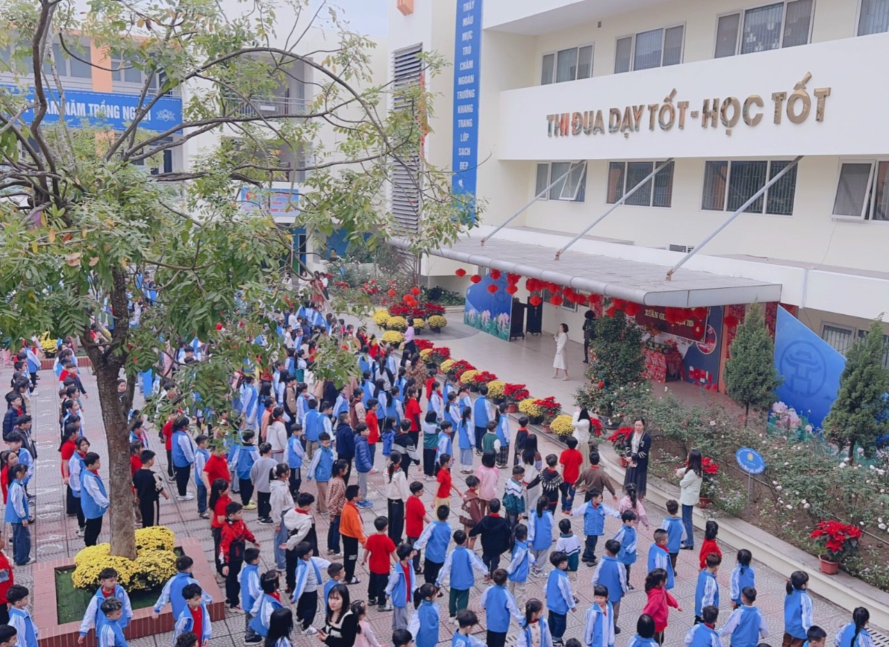 Từ 7h sáng ngày 15/2, đại diện cán bộ, giáo viên và phụ huynh học sinh đã có mặt tại trường . Thực hiện chỉ đạo của Sở Giáo dục và Đào tạo (GD&ĐT) Hà Nội, cô và trò bắt tay ngay vào bài học theo đúng kế hoạch. Giờ học chiều nay, các lớp sẽ dành thời gian để cô và trò cùng nhau kể những câu chuyện, kỷ niệm trong kỳ nghỉ Tết.