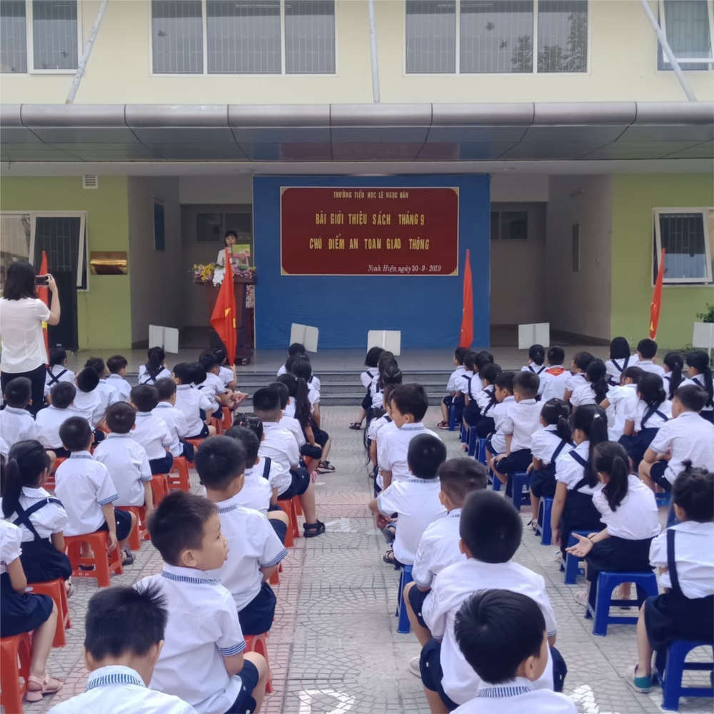 Ngày 30 tháng 09 năm 2019, Thư viện trường Tiểu học Lê Ngọc Hân giới thiệu tới cán bộ, giáo viên, nhân viên và các em học sinh cuốn sách : “ An toàn giao thông cho nụ cười trẻ thơ” vào giờ chào cờ đầu tuần.