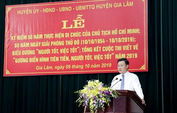 Bên cạnh đó, Bí thư Huyện ủy Gia Lâm đề nghị toàn huyện tiếp tục đổi mới phương thức lãnh đạo, chỉ đạo phong trào "Người tốt, việc tốt" để phong trào thực sự là động lực thúc đẩy hoàn thành các chỉ tiêu nhiệm vụ phát triển KT - XH, ANQP của huyện.