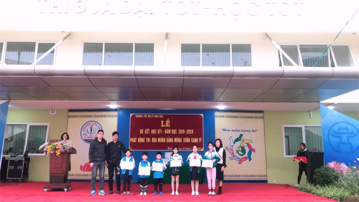 Hải Anh ( đứng thứ 2 bên phải ) nhận danh hiệu học sinh Tiêu biểu Học kì 1 năm học 2019-2020