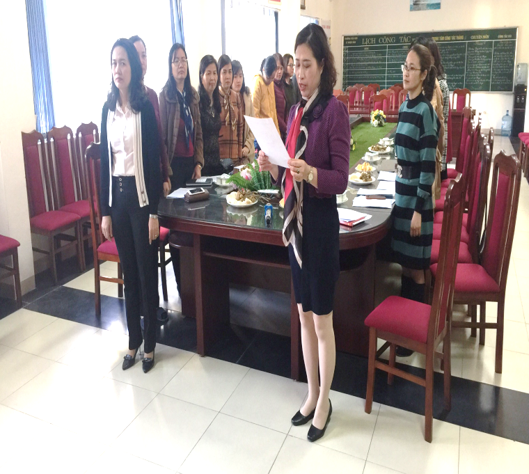 Tại buổi Lễ, đồng chí Trần Thị Minh Hiên - Bí thư chi bộ Hiệu trưởng nhà trường đã trao Quyết định kết nạp Đảng cho quần chúng Nguyễn Phương Tĩnh và phân công nhiệm vụ cho đảng viên mới, đồng thời phân công các đồng chí đảng viên chính thức trong chi bộ tiếp tục giúp đỡ, dìu dắt đồng chí đảng viên mới trong thời gian thử thách 12 tháng.