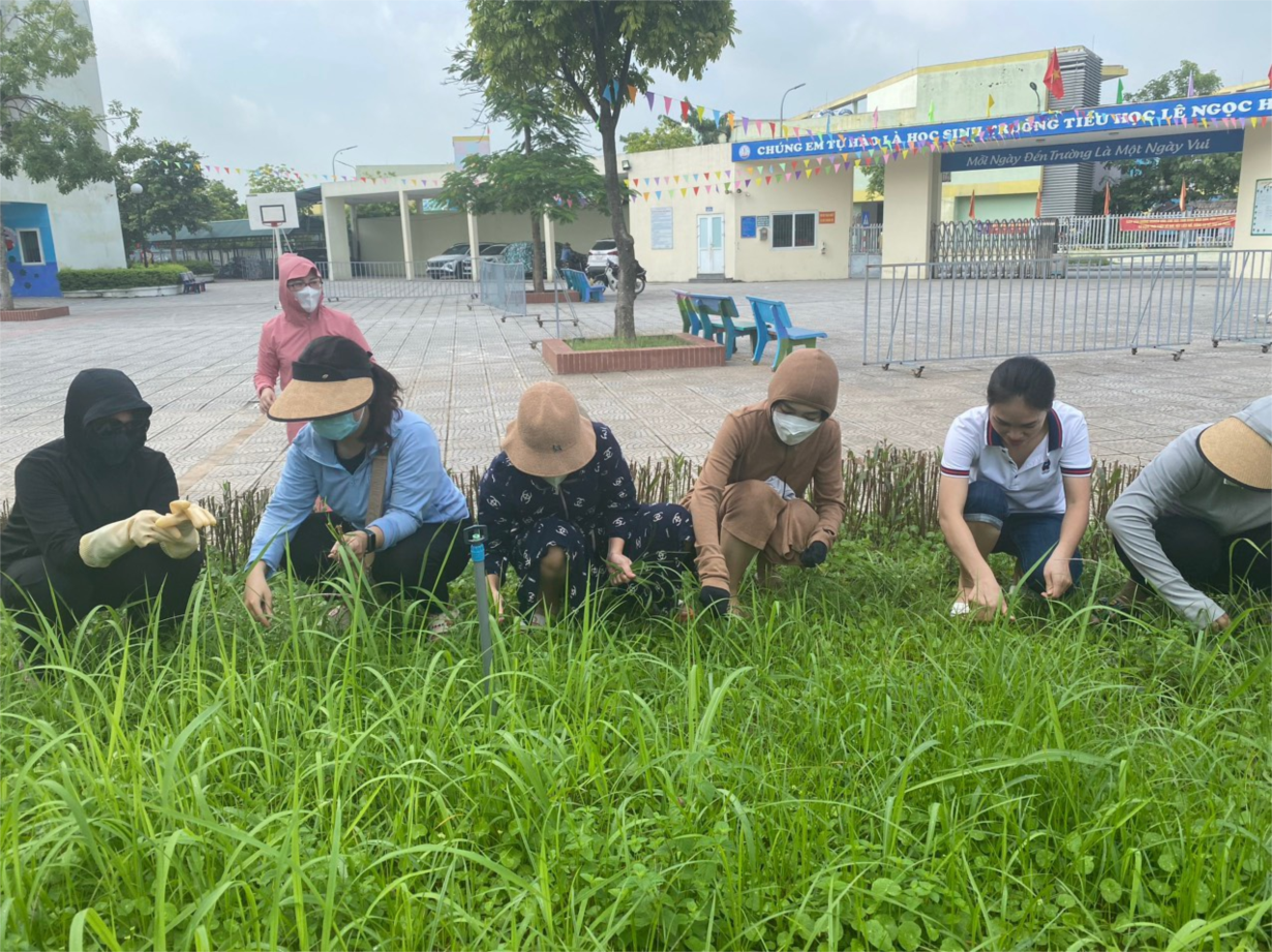 Ban giám hiệu trường tiểu học Lê Ngọc Hân đã xây dựng kế hoạch và phân công nhiệm vụ cho giáo viên phụ trách các lớp, các đoàn thể như công đoàn, chi đoàn, tổng phụ trách Đội xây dựng kế hoạch lao động vệ sinh khuôn viên, trang trí lớp học để chuẩn bị chào đón năm học mới. Ngay những ngày đầu tháng 9, phát huy vai trò xung kích tình nguyện, Đoàn trường tiểu học Lê Ngọc Hân đã phát động ra quân cắt cỏ, vệ sinh toàn bộ khuôn viên trường và khu vực ngoài cổng trường để tiếp tục duy trì môi trường học tập Xanh – Sạch – Đẹp – An toàn. Đoàn thanh niên kết hợp với cha mẹ học sinh đã tổ chức lao động vệ sinh từ cổng trường đến vệ sinh dọn dẹp trường lớp, cải tạo môi trường trong và ngoài lớp học,… Tiếp theo toàn bộ các bồn hoa được cắt tỉa, nhổ cỏ, dọn rác khu vực xung quanh trường. Các công đoàn viên phân công nhóm dọn sân trường, phân loại rác thải, chăm bón phân các bồn hoa, cây cảnh trong khuôn viên trường, trước các lớp học, phát quang các bụi cỏ rậm rạp, trồng bổ sung thêm nhiều cây hoa, cây cảnh đảm bảo cảnh quan môi trường Xanh – Sạch – Đẹp – An toàn để chuẩn bị tốt cho công tác đón học sinh tựu