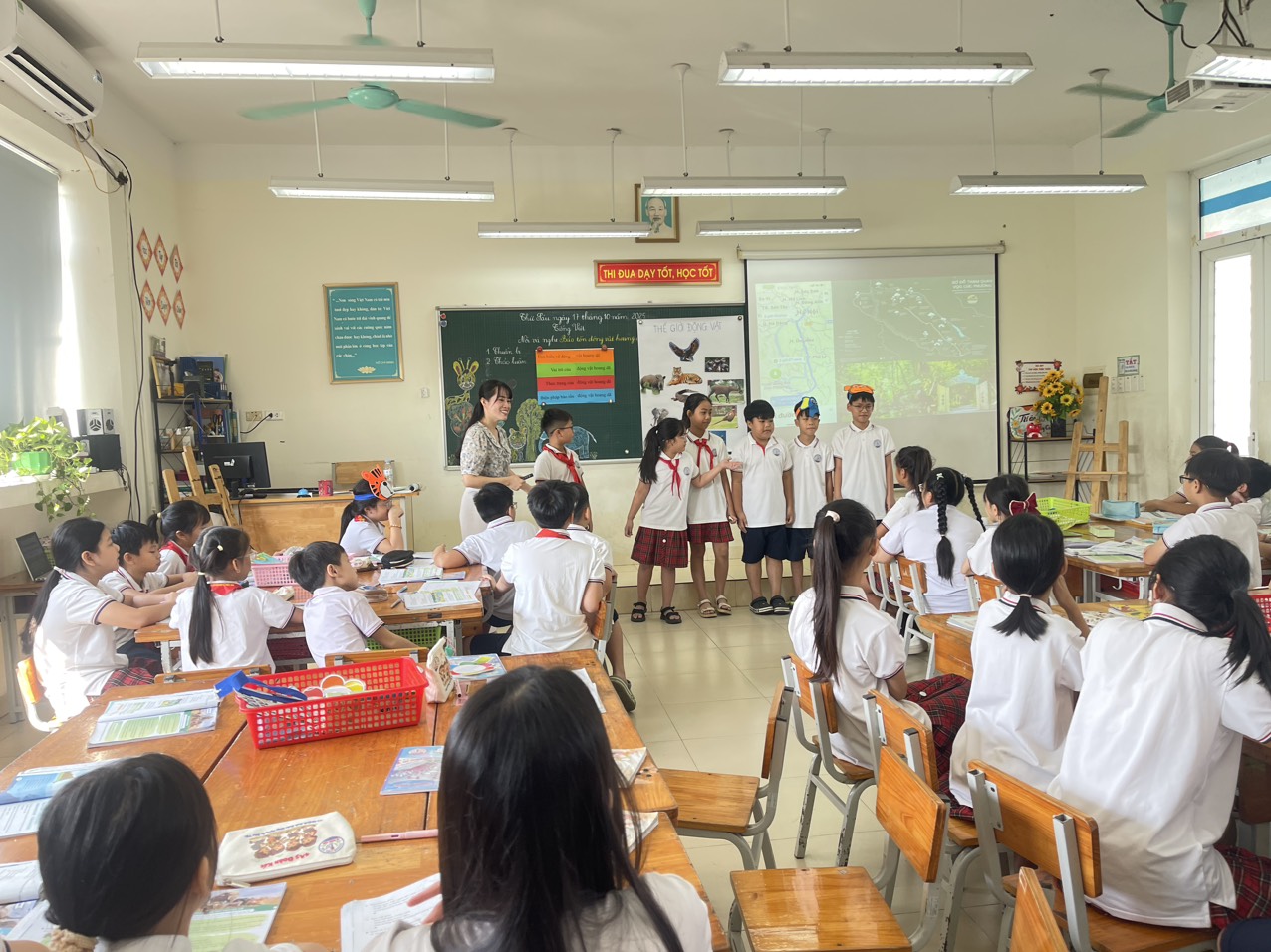Trong tiết học, học sinh được tìm hiểu về khái niệm động vật hoang dã, vai trò của chúng trong hệ sinh thái, thực trạng bị đe dọa và những biện pháp cần thiết để bảo tồn. Bằng việc tích hợp kiến thức liên môn, cô Ngà giúp các em nhận thấy mối liên hệ giữa môn Tiếng Việt và các lĩnh vực khoa học – xã hội, qua đó khơi dậy tư duy phản biện, kỹ năng giao tiếp và tinh thần bảo vệ môi trường sống của muôn loài.