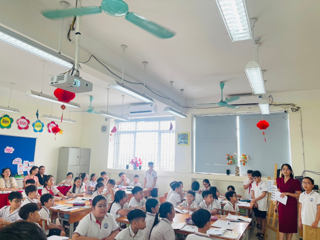 Trình bày quan điểm, giao lưu với các bạn, cùng trao đổi ý kiến, đó là cách giúp học sinh tự tin, tích cực trong học tập. Trong tiết dạy, cô giáo Nguyễn Thị Tuyết tổ chức nhiều hoạt động giúp học sinh mạnh dạn nêu suy nghĩ, cảm xúc của mình, rèn kỹ năng trao đổi, thảo luận. Học sinh được thực hành làm việc nhóm, cùng nhau học, từ đó phát triển năng lực hợp tác và tư duy sáng tạo.