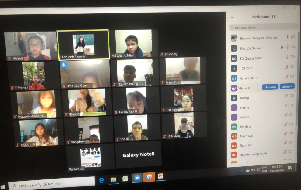 Hình ảnh các bạn học sinh tích cực tham gia học tập trên ứng dụng zoom