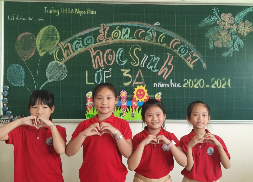 Học sinh lớp 3A thực hiện đúng quy định phòng dịch.