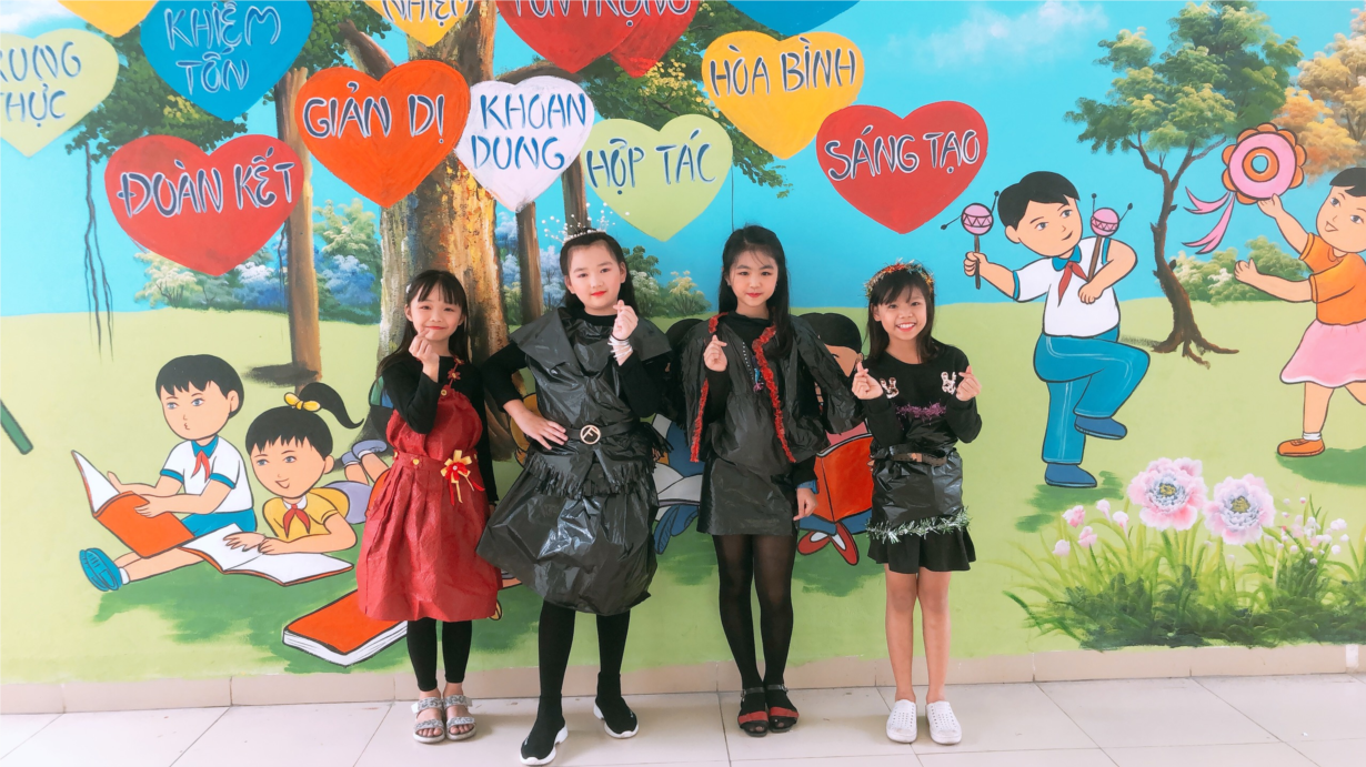 Điểm nhấn của ngoại khóa là cuộc thi thiết kế và biểu diễn thời trang tái chế bảo vệ môi trường, giúp các em học sinh nhận thức sâu sắc về trách nhiệm và ý nghĩa của việc bảo vệ môi trường.