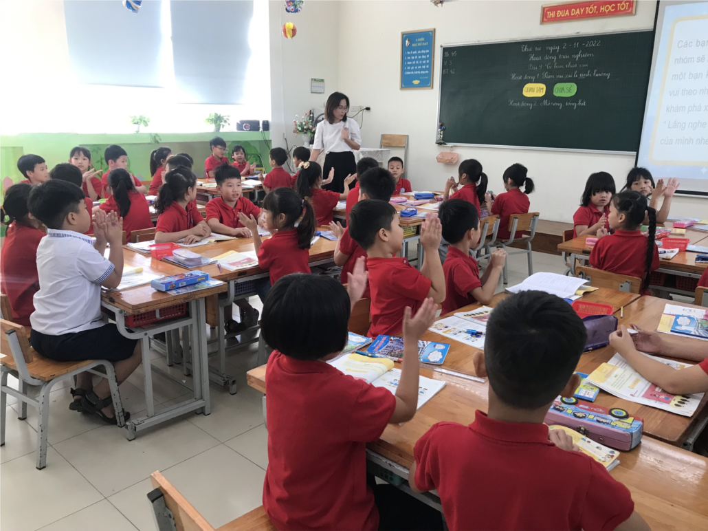 Hòa cùng không khí thi đua của cán bộ giáo viên trong trường, cô giáo Lê Thị Huyền Trang cùng tổ chuyên môn khối 2 đã cùng nhau xây dựng các tiết hội giảng, giờ học tốt ở Hoạt động trải nghiệm, bài 9: Có bạn thật vui. Giờ học diễn ra rất sôi nổi với phần làm việc tích cực và hăng hái của các tập thể lớp. Các bạn học sinh cùng làm việc nhóm, được tham gia vào các hoạt động trải nghiệm sáng tạo thông qua các tiết dạy. Qua các hình ảnh trực quan, sinh động và trò chơi học tập ngộ nghĩnh, vui tươi, đã giúp học sinh nhớ bài lâu hơn và thêm yêu thích môn học. Đây thực sự là những tiết học rất bổ ích và lý thú đối với học sinh. Dưới đây là một số hình ảnh tiết hội giảng:
