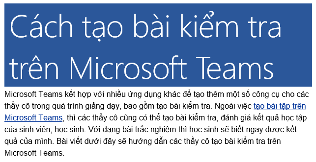 Học sinh chỉ cần mở Microsoft Teams rồi nhấn vào thông báo để làm bài kiểm tra trực tiếp trên Microsoft Teams.