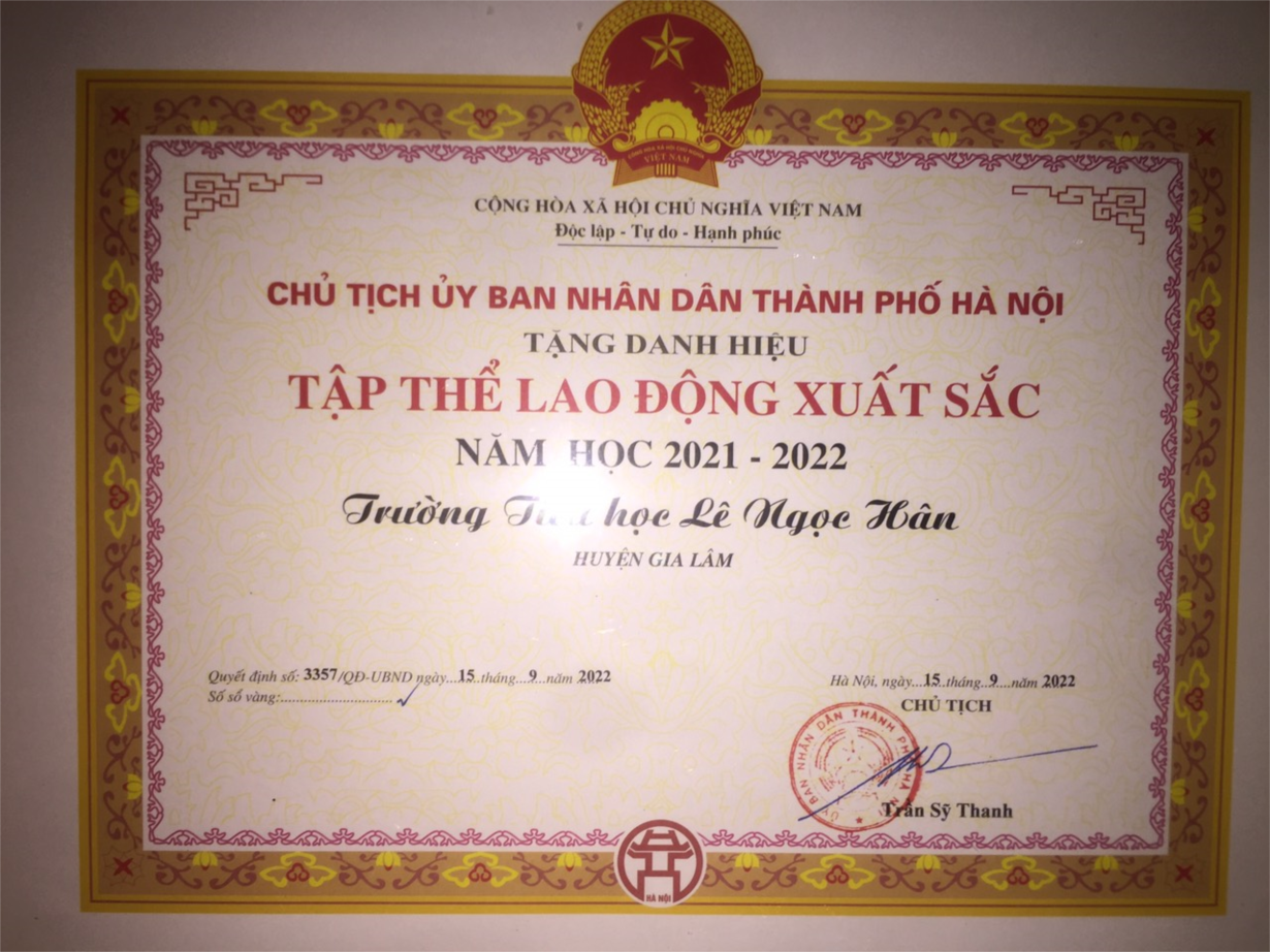 - Trường Tập thể Lao động Xuất sắc cấp Thành phố