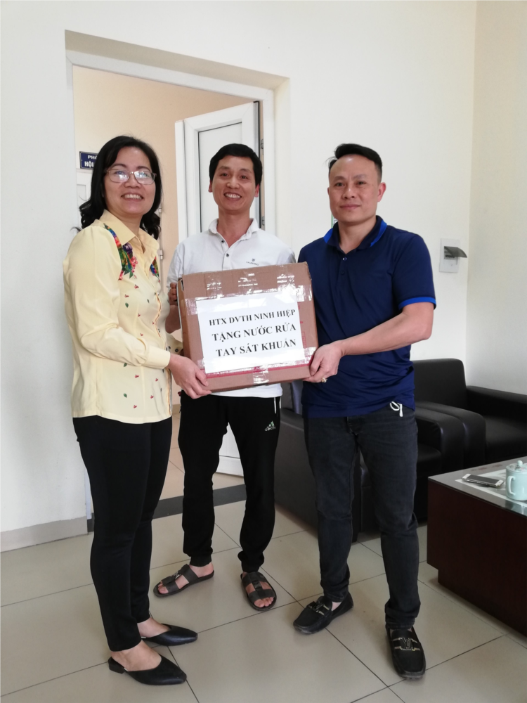 Thay mặt nhà trường, đ.c Phó Hiệu trưởng đã ghi nhận và cảm ơn sự quan tâm các đ.c lãnh đạo HTX DVTH xã Ninh Hiệp đã quan tâm, động viên, cùng nhà trường chung tay góp sức cho công cuộc chống dịch covid -19.