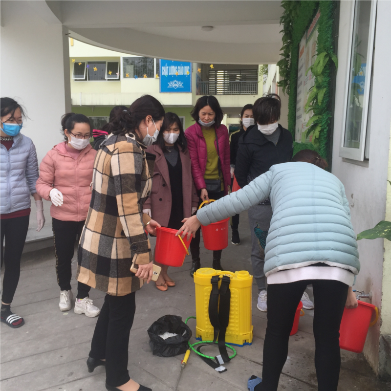 Hôm nay ngày 16/2/2020 toàn thể CBGV-NV và các bác phụ huynh đại diện cacs lớp của trường Tiểu học Lê Ngọc Hân đã thực hiện tổng vệ sinh diệt khuẩn lần 3 phòng, chống dịch bệnh do chủng mới của virus Corona (nCoV) gây. Với tinh thần sẵn sang chuẩn bị CSVC đảm bảo an toàn sạch sẽ phòng dịch để đón các con HS trở lại trường học. Các thày cô và các bác phụ huynh được cô y tế hướng dẫn cách pha thuốc khử khuẩn đúng tỉ lệ hòa vào nước. Tất cả các vị trí phòng học và phòng chức năng, bàn ghế, cửa kính được lau sạch sẽ.